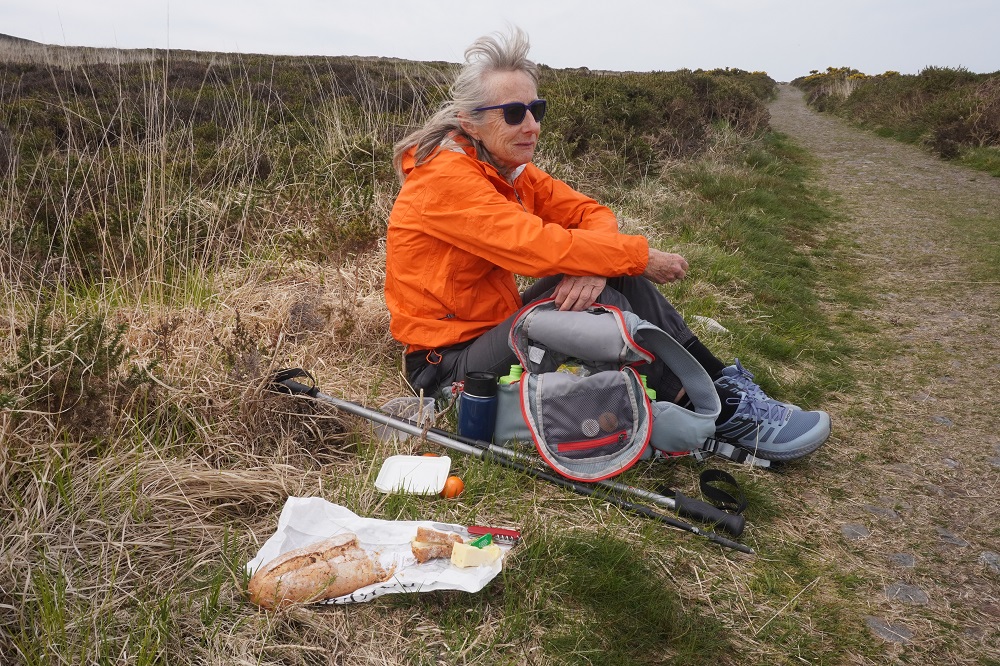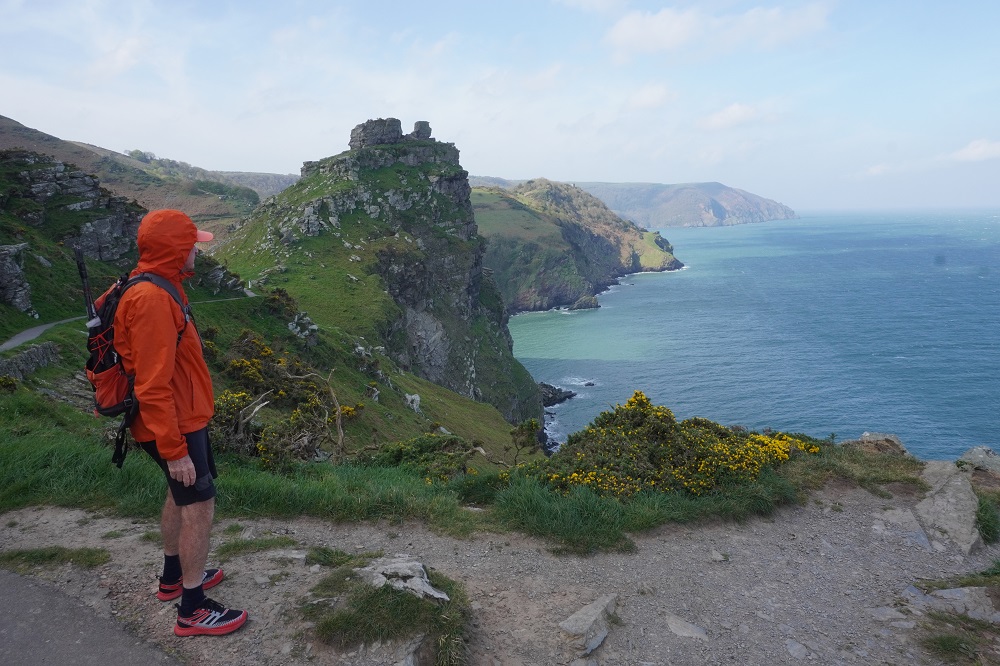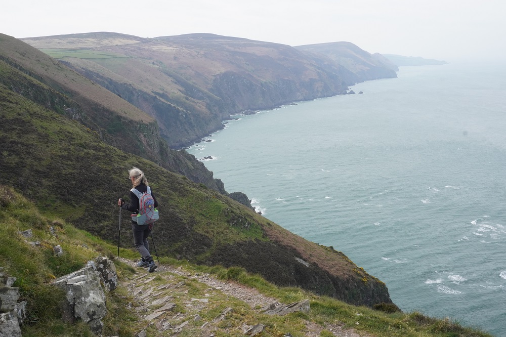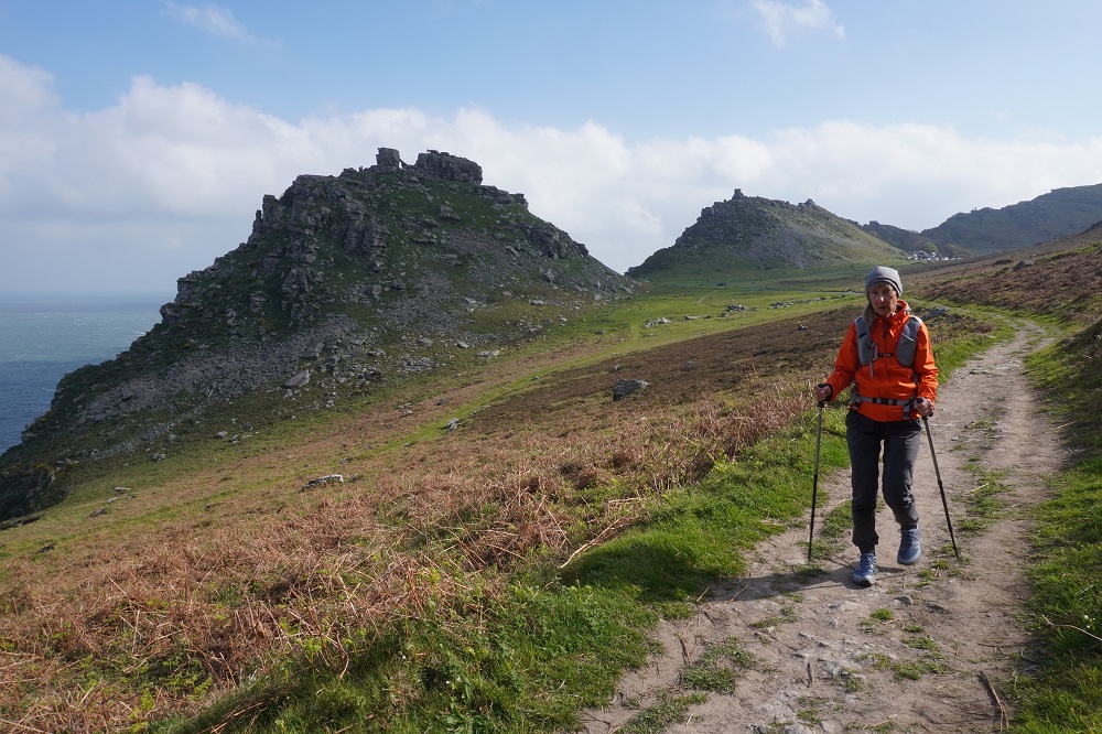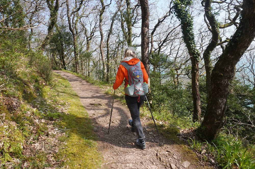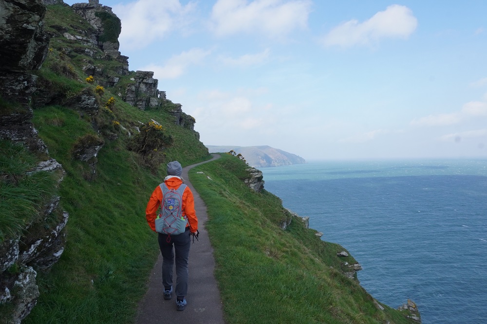 Today’s walk was also the most remote and isolated of the coast where Exmoor meets the sea. No villages, few farms, no harbours, no places to eat and drink – or loos. These are the parts of the walk we like the best. Barbara says it feels so wild and free. The cliffs, the rocks, the sea, the woodland, the sky, the wind, and the narrow path we faithfully follow.
