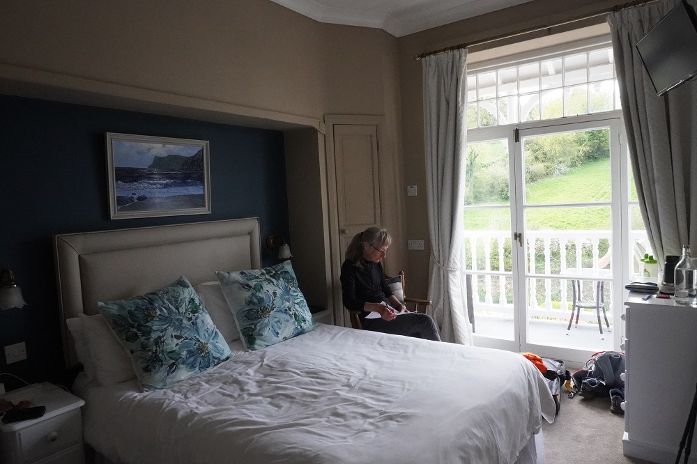 Overall a demanding day but very enjoyable. We are at The Poplars, a basic 3 star hotel, and we have a balcony with a view of the sea. Just a short walk into the village for dinner at The Dolphin. The menu wasn’t very exciting and I succumbed and had my first burger for this trip. Barbara is still holding out. Coombe Martin’s claim to fame is that they have the longest high street in England but this a bit dubious as the street is extremely long but mostly residential not commercial. They did once feature in The Guiness Book of Records for holding the longest street party. So it must be fun place.